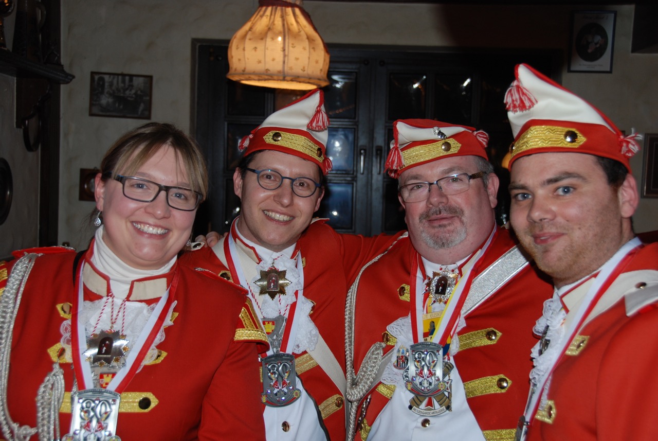 Der eigentliche „Geburtstag“ der Prinzengarde ist der 25. Februar 1938. Da dieser Tag leider außerhalb der Session 2018 fällt, hat die Prinzengarde sich entschlossen die Geburtstagfeier vor zu verlegen. Am vergangenen Samstag feierten die Rot-Weißen im „Annaturm“ zu Euskirchen ihren 80-zigsten. Der Vorstand der Prinzengarde überreichte jedem aktiven Gardisten den Jubiläumsorden. Auch Prinz Peter II. in Begleitung vom Festausschuß Euskirchener Karneval, ließ es sich nicht nehmen „seiner“ Prinzengarde zum Jubiläum zu gratulieren.