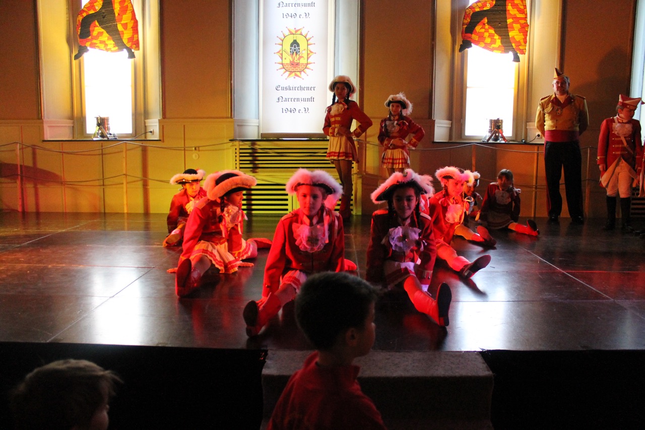 Heute stand die Audienz am Hofe Sr. Tollität auf dem Programm. Der designierte Küfer der Kreisstadt marschierte mit den Euskirchener Kindertanzgruppen beim Altentag im Euskirchener Cityforum auf. Auf der Bühne angekommen, ließ er sich in das Glied der Junggardisten einreihen und tanzte den Gardemarsch mit. Küfer Marvin I. ist halt ein waschechter Gardist, der, wenn er nicht gerade als Küfer proklamiert ist, in den Reihen des Tanzcorps an des stolzen Vaters Seite seine ersten Schritte macht.