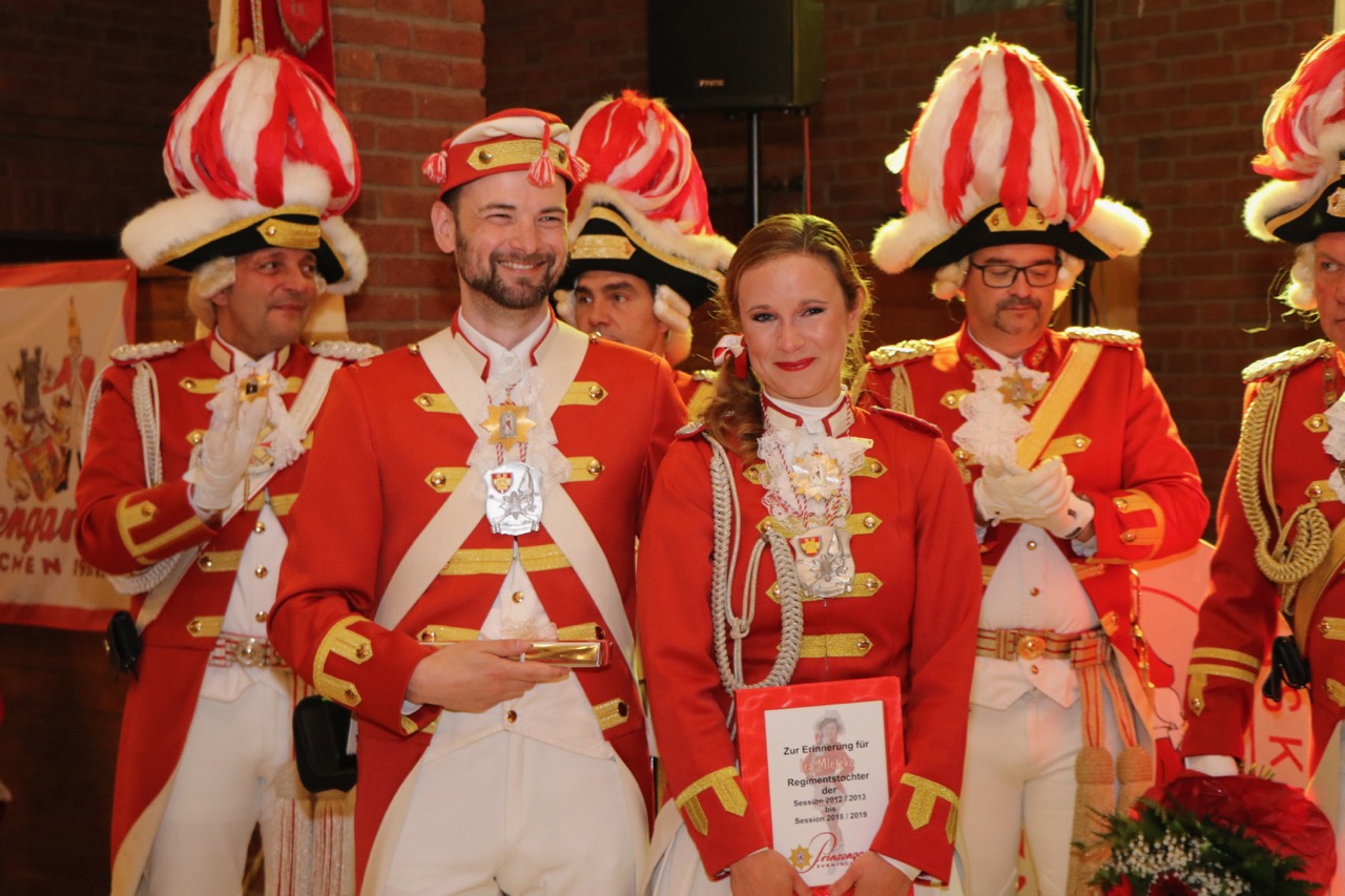 Nach der offiziellen Verabschiedung des „alten“ Tanzpaares Ira Mletzko (7 Jahre Regimentstochter) und Erik Tobias (2 Jahre Tanzoffizier) hatte das neue Tanzpaar der Prinzengarde Regimentstochter Lea Klose und Tanzoffizier Bastian Guthausen seine Premiere, die Lea und Bastian mit Bravour meisterten.
