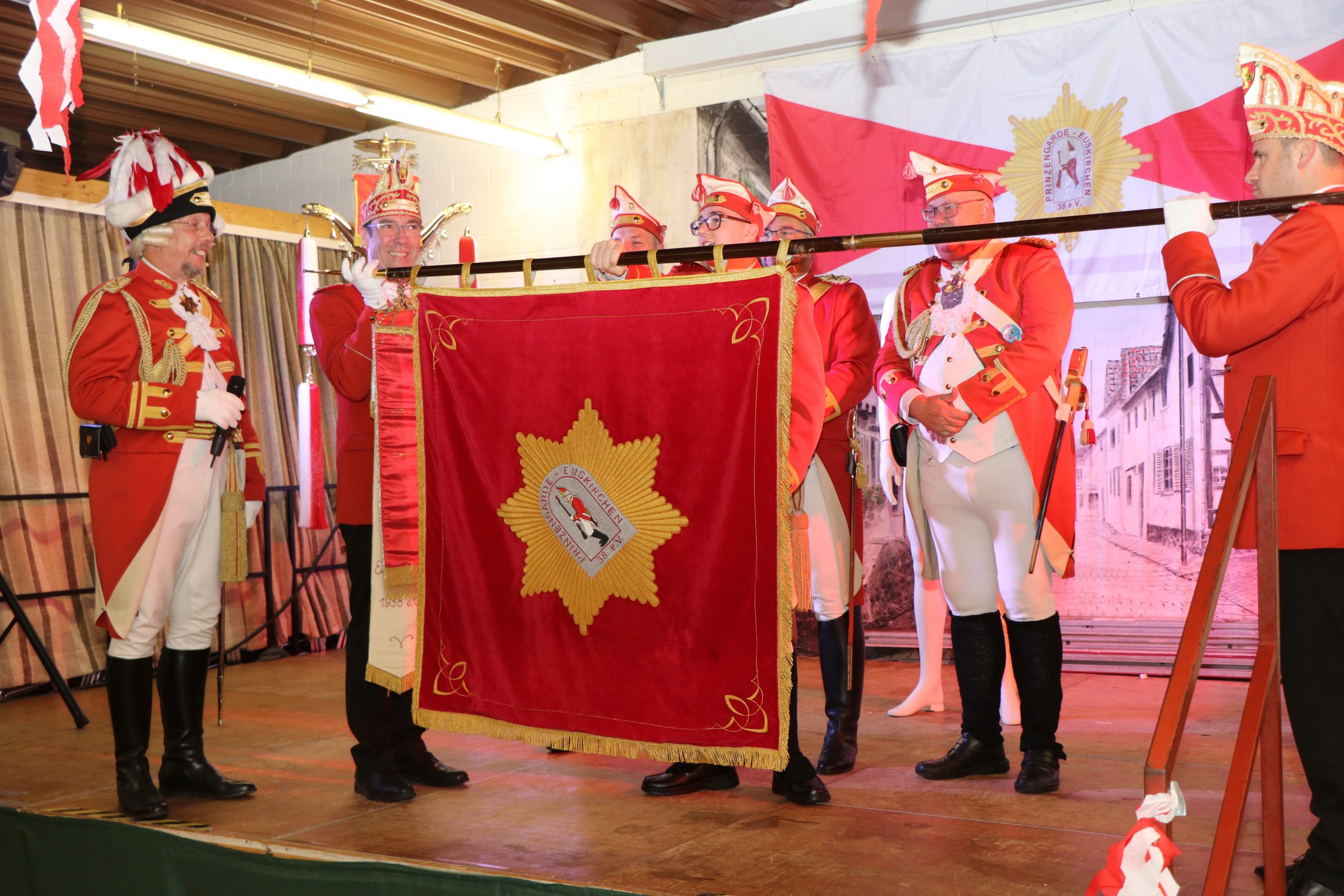Ehrungen und Ernennungen gab es natürlich auch. So wurde unserem Präsidenten für 50 aktive Jahre der besondere Gardestern nebst Urkunde übereicht. Ferner durfte die Prinzengarde Pastor Tobias Hopmann zum neuen Regimentspfarrer ernennen. Unser Präsident überreichte Ihm neben der Ernennungsurkunde noch die Feldmütze und den Schal der Prinzengarde.