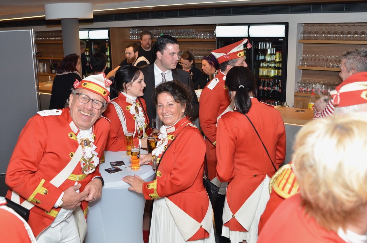 Unser Dreigestirn, vertreten durch Walter Geusen als Prinz Walter I., Ralf Olef als Bauer Ralf und Carlo Wisskirchen als Jungfrau Carlotta, begeisterte genau wie unser Küfer Jascha alle Jecken unserer Vaterstadt.