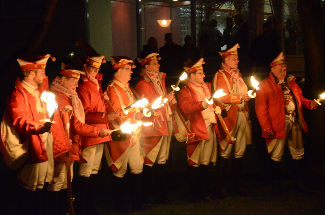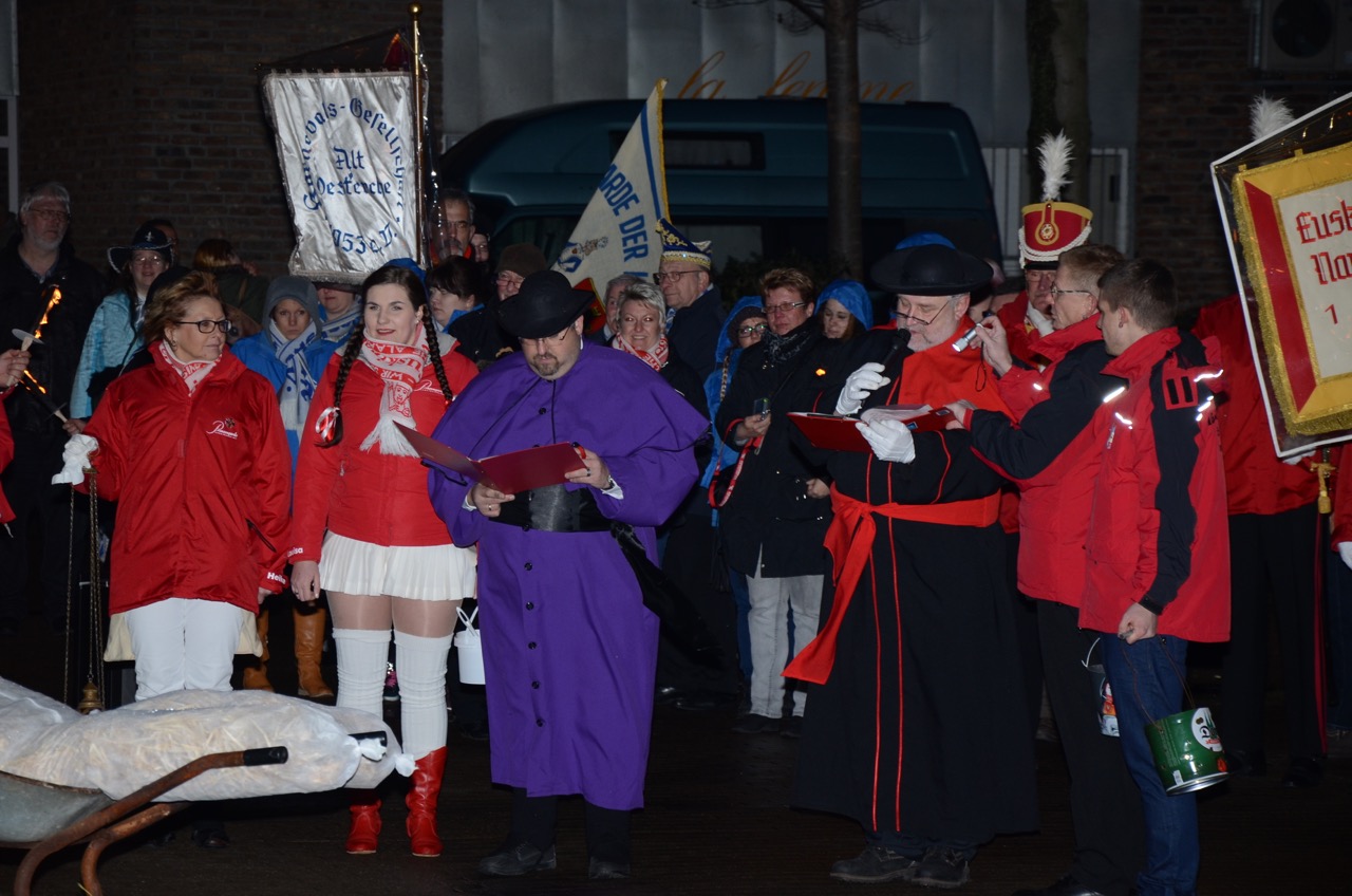 Freigesprochen von Schuld und Sünde, begleiteten die Karnevalisten der Garden Prinz Frank II. und Küfer Marvin I. von Euskirchen in das Cityforum, um ihnen die Ehre eines letzten Abschieds zu erweisen.