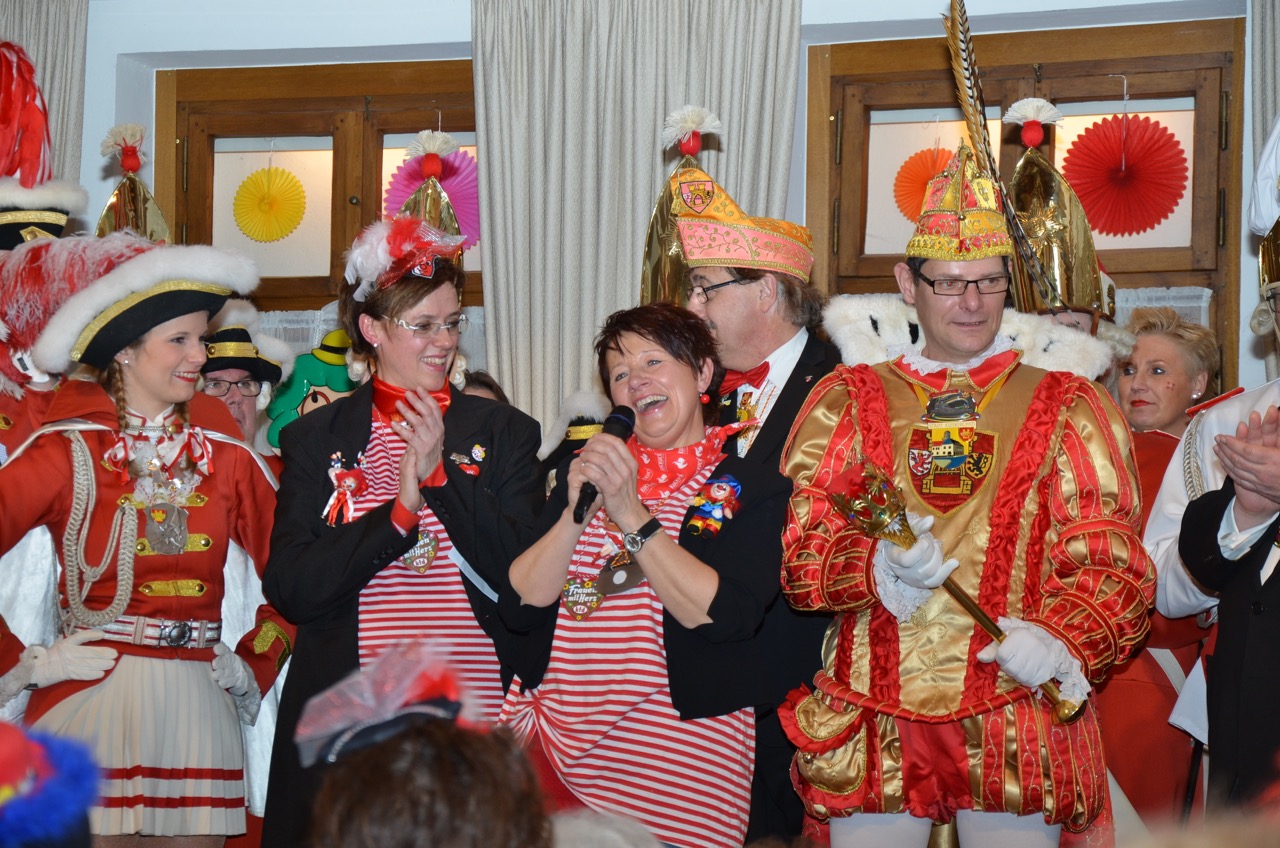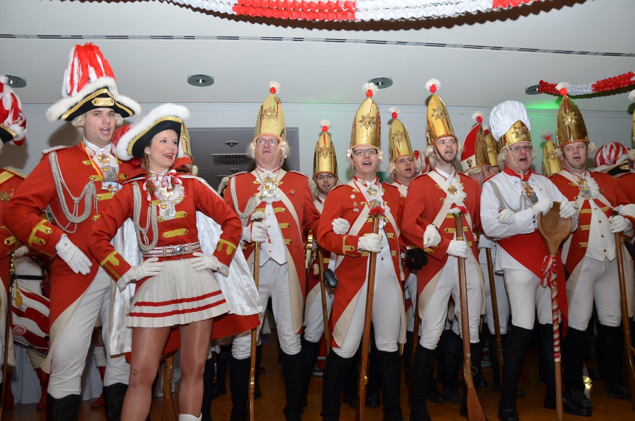 Es folge der Besuch bei der Kreissparkasse Euskirchen und der vorzüglichen Mannschaftsverpflegung zu Mittag, zu der alle beteiligten Vereine eingeladen waren. Anschließend steuerten die Gardisten die Damensitzungen der KG Hardtburg in Stotzheim und der KfD in Kreuzweingarten an.