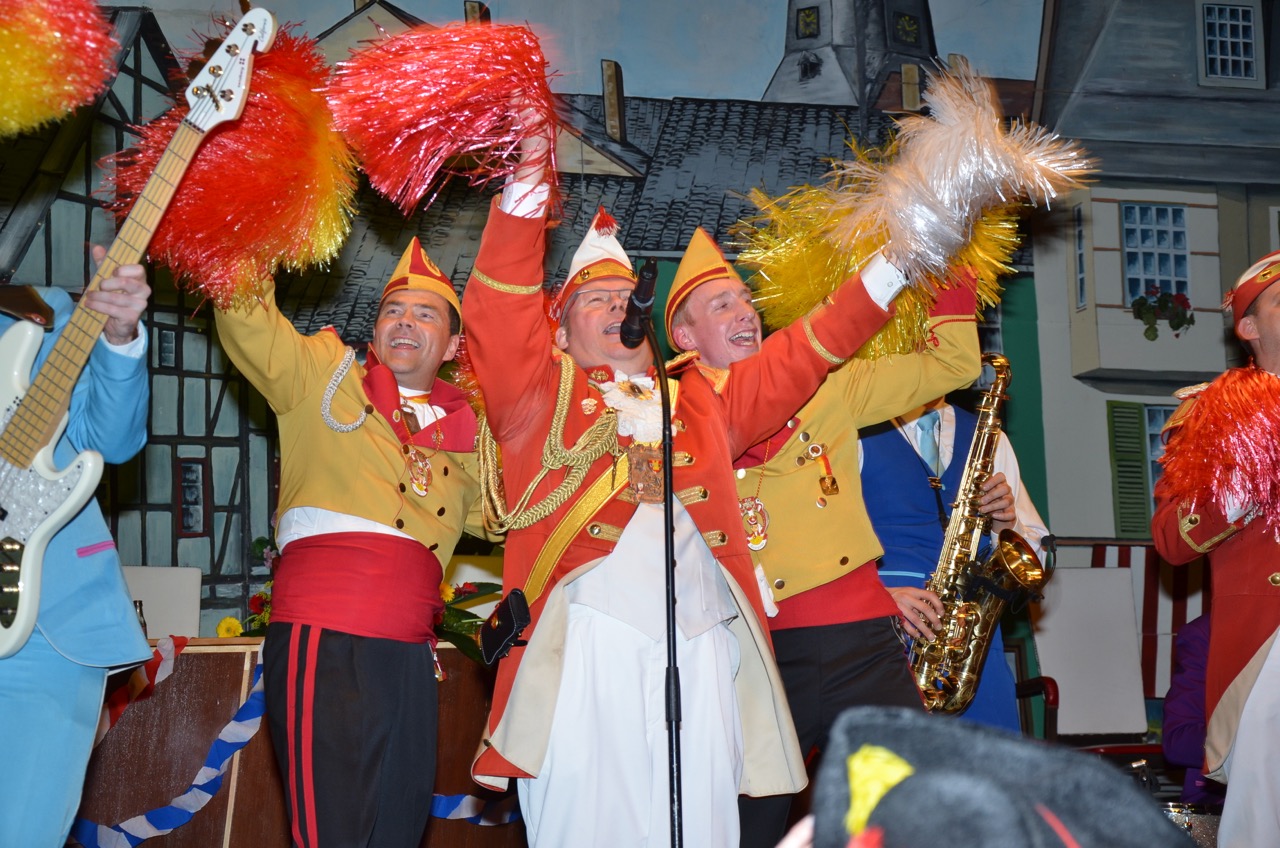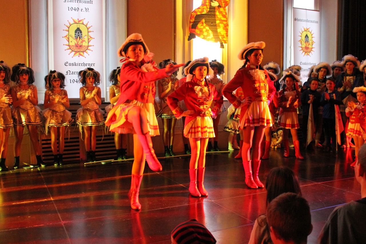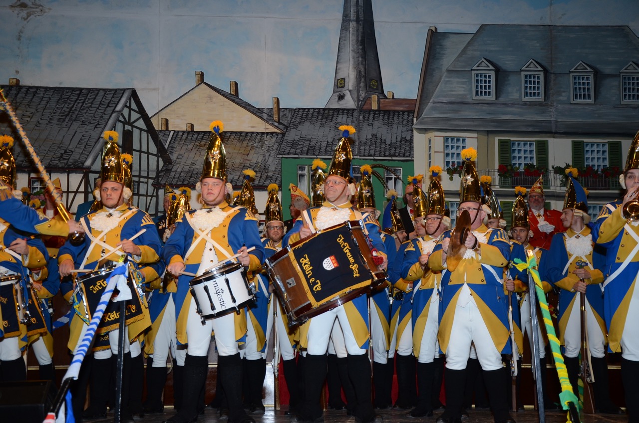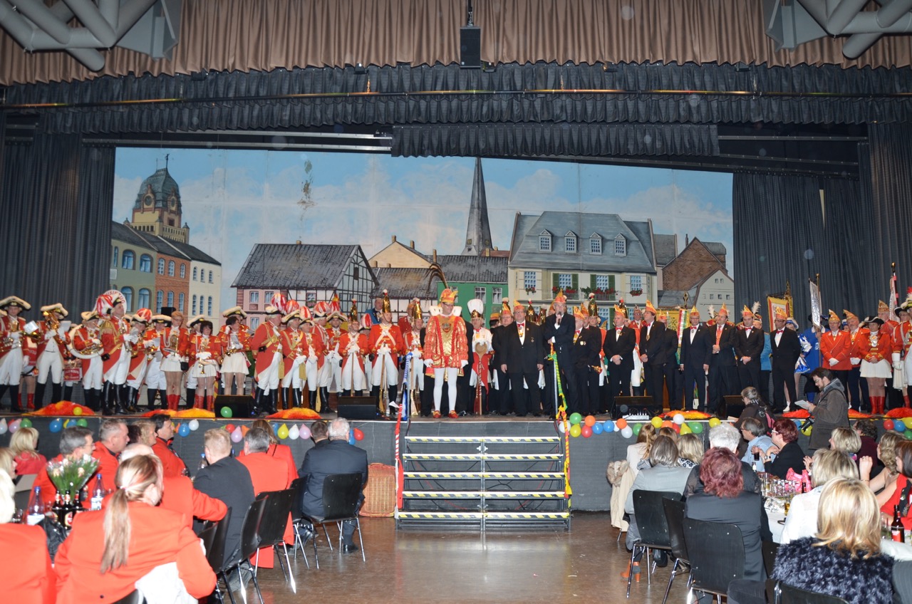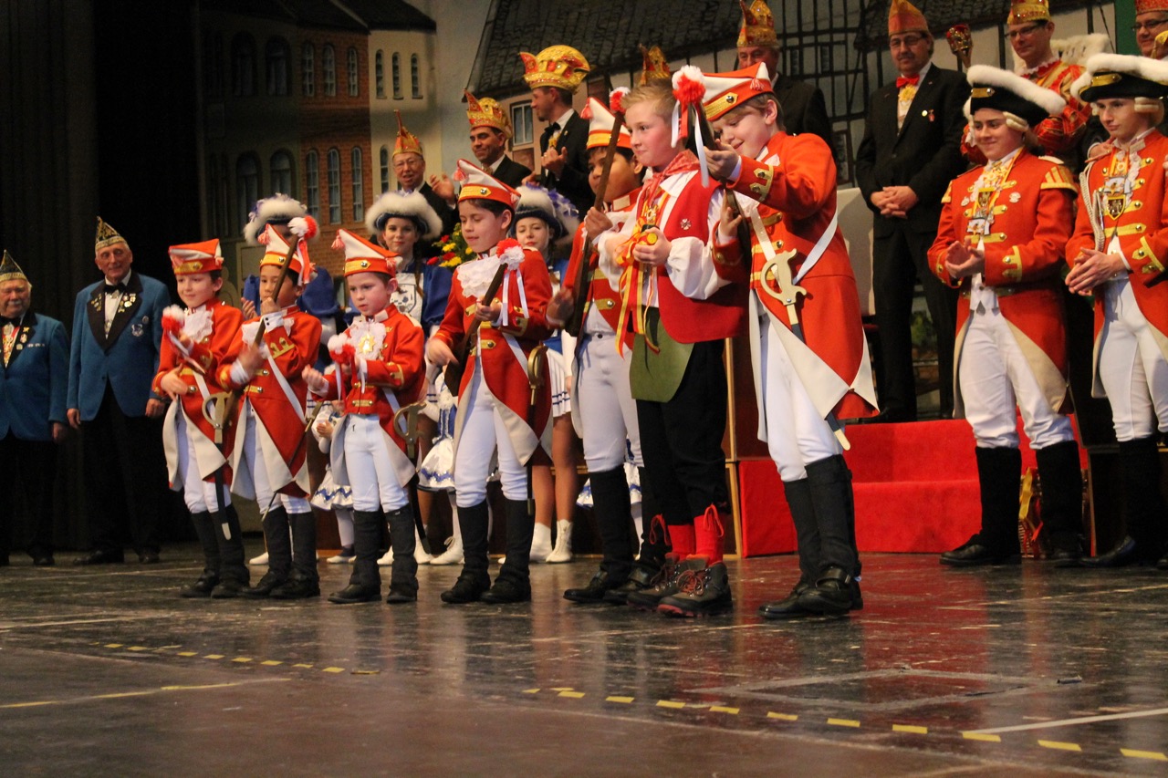 „Oeskerche Alaaf“ schallte es am 8. Januar 2016 durch das Euskirchener City-Forum. Im Rahmen der großen Sitzungsparty, organisiert von den vier heimatstädtischen Vereinen, begleitete die Prinzengarde Euskirchen 1938 e.V. mit fast 100 aktiven Gardisten den diesjährigen Kernstadtprinzen Frank II. zur Bühne. Im Anschluß an die Proklamation durch unseren Bürgermeister Dr. Uwe Friedl übernahm das Tanzcorps zum ersten Tanz die Bühne. Leider war unsere Regimentstochter Ira erkrankt und somit mußten wir auf den Mariechentanz verzichten. Aus der Not heraus wurde der „doppelte Fehrbelliner“ geboren, das heißt, zwei mal acht Gardisten tanzten den traditionellen Gardetanz der Prinzengarde. Den Auftritt beendete unser Musikzug mit einem kölschen Medly.