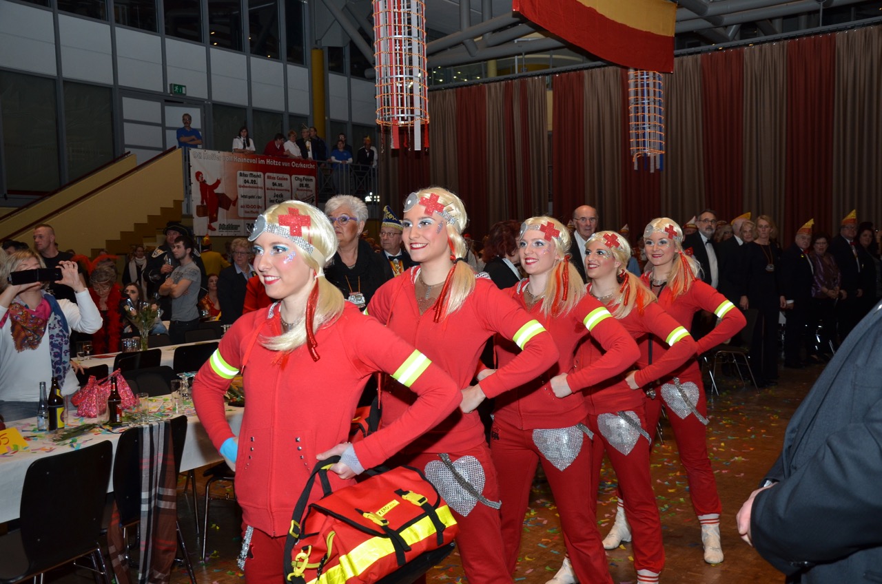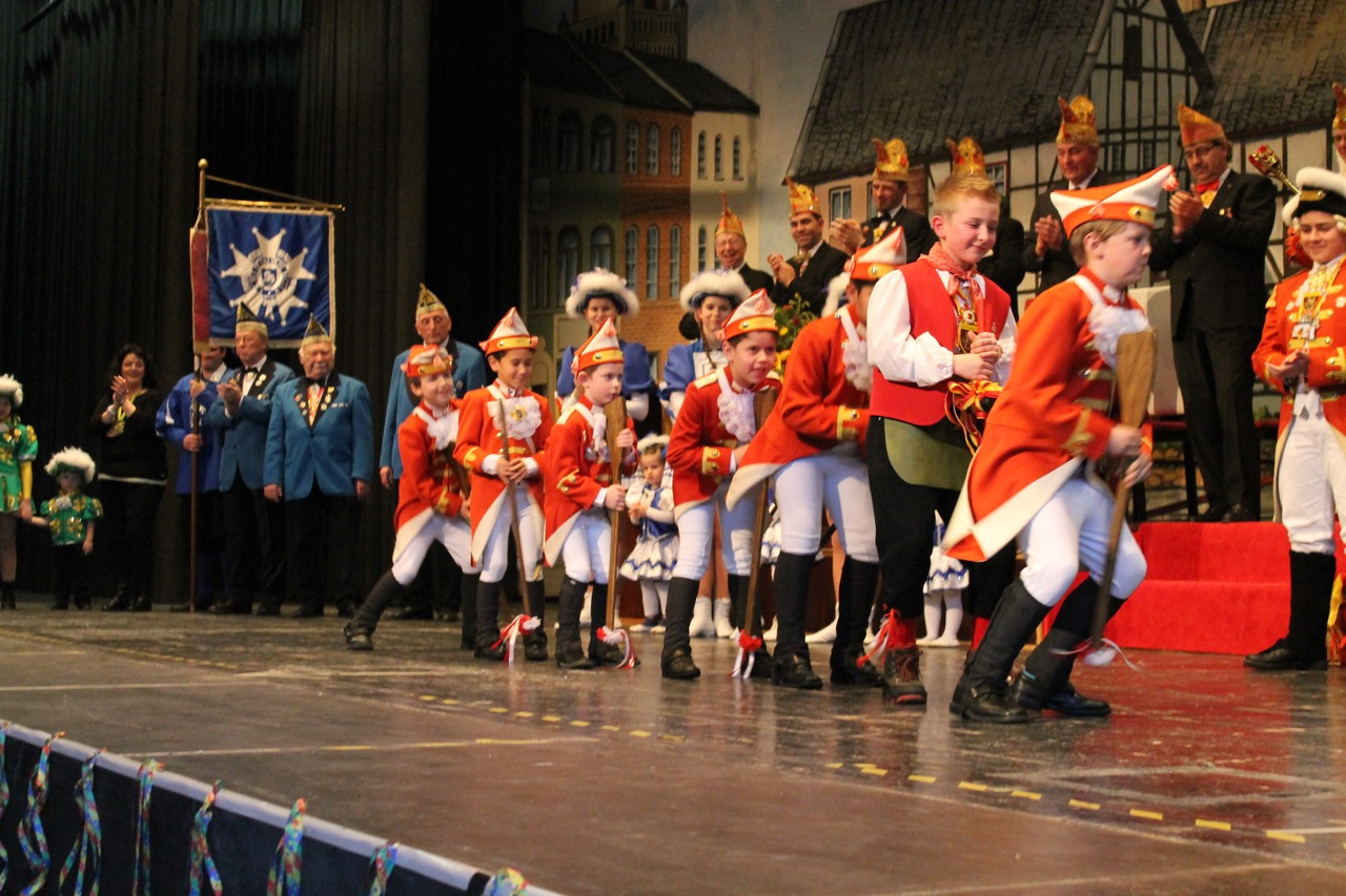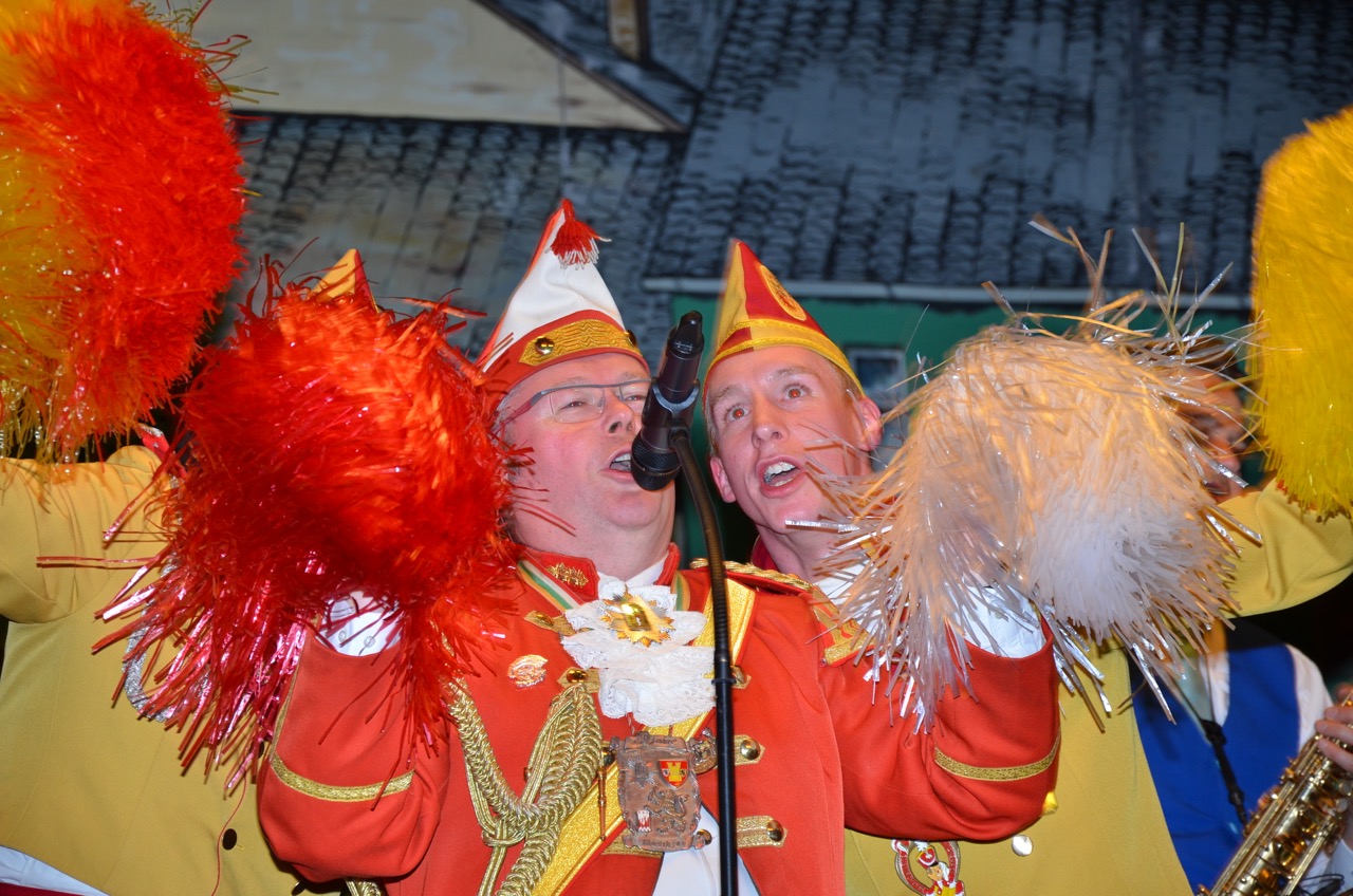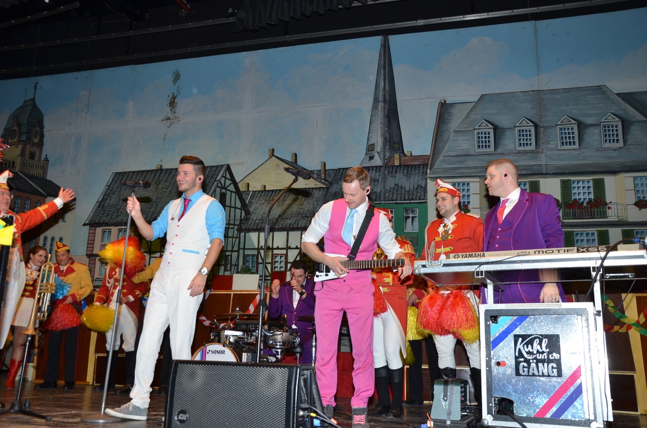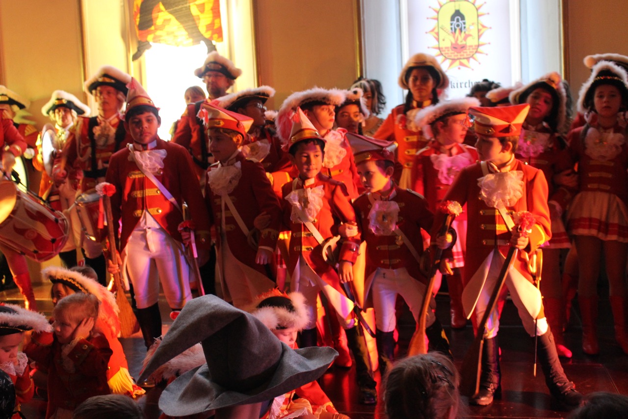 „Oeskerche Alaaf“ schallte es am 8. Januar 2016 durch das Euskirchener City-Forum. Im Rahmen der großen Sitzungsparty, organisiert von den vier heimatstädtischen Vereinen, begleitete die Prinzengarde Euskirchen 1938 e.V. mit fast 100 aktiven Gardisten den diesjährigen Kernstadtprinzen Frank II. zur Bühne. Im Anschluß an die Proklamation durch unseren Bürgermeister Dr. Uwe Friedl übernahm das Tanzcorps zum ersten Tanz die Bühne. Leider war unsere Regimentstochter Ira erkrankt und somit mußten wir auf den Mariechentanz verzichten. Aus der Not heraus wurde der „doppelte Fehrbelliner“ geboren, das heißt, zwei mal acht Gardisten tanzten den traditionellen Gardetanz der Prinzengarde. Den Auftritt beendete unser Musikzug mit einem kölschen Medly.