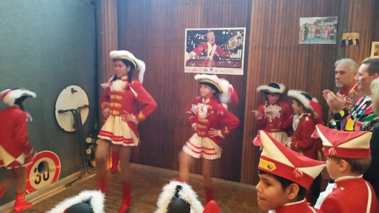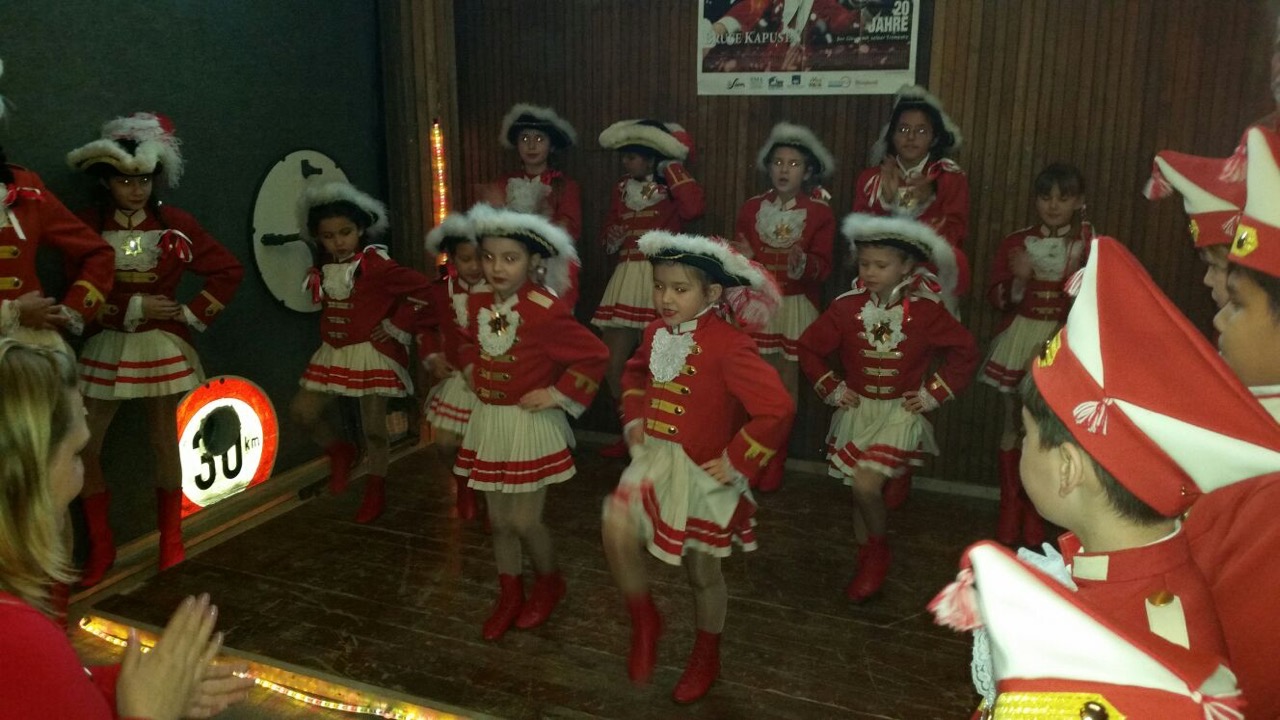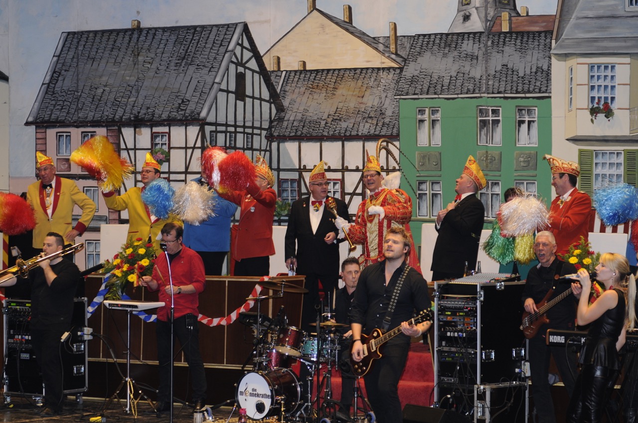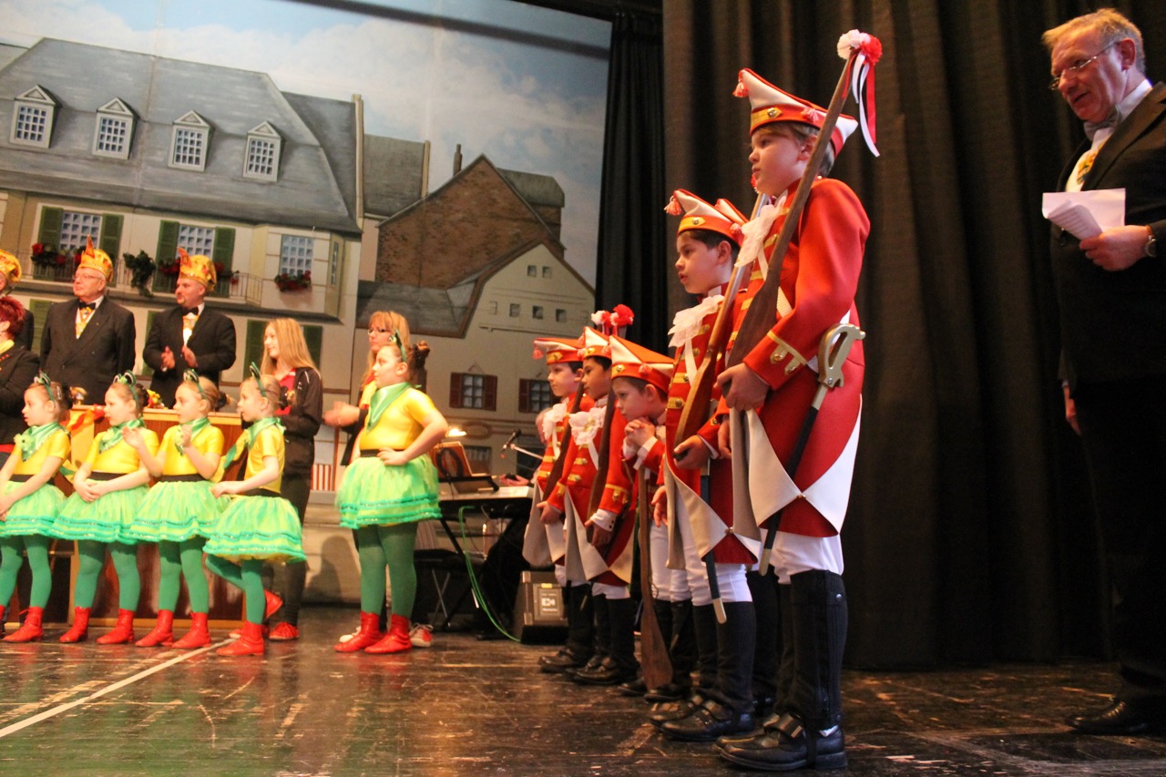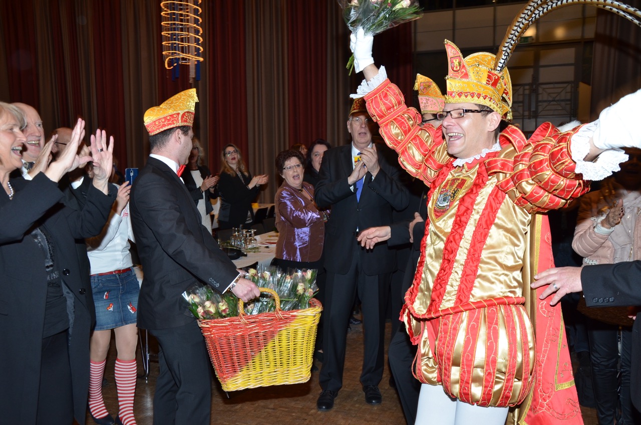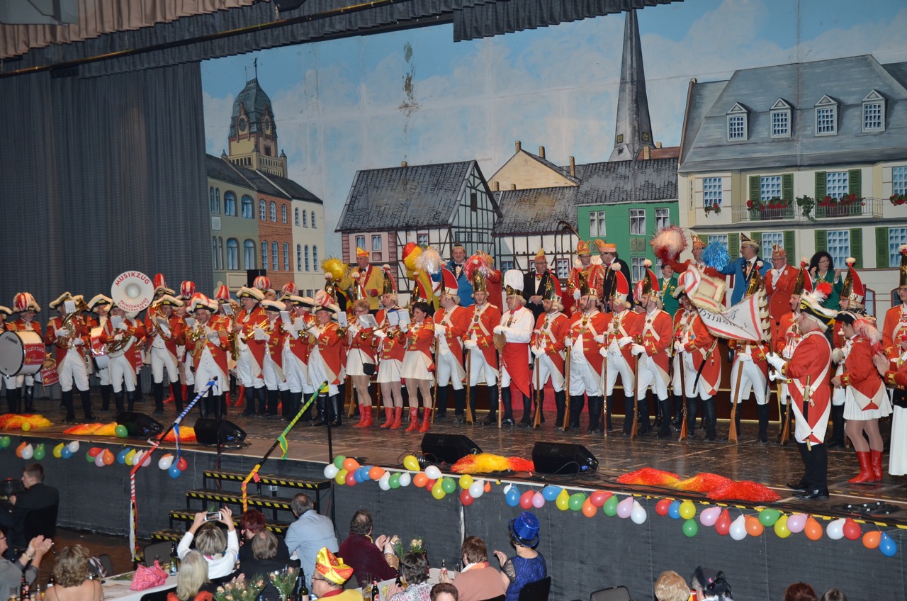 „Oeskerche Alaaf“ schallte es am 8. Januar 2016 durch das Euskirchener City-Forum. Im Rahmen der großen Sitzungsparty, organisiert von den vier heimatstädtischen Vereinen, begleitete die Prinzengarde Euskirchen 1938 e.V. mit fast 100 aktiven Gardisten den diesjährigen Kernstadtprinzen Frank II. zur Bühne. Im Anschluß an die Proklamation durch unseren Bürgermeister Dr. Uwe Friedl übernahm das Tanzcorps zum ersten Tanz die Bühne. Leider war unsere Regimentstochter Ira erkrankt und somit mußten wir auf den Mariechentanz verzichten. Aus der Not heraus wurde der „doppelte Fehrbelliner“ geboren, das heißt, zwei mal acht Gardisten tanzten den traditionellen Gardetanz der Prinzengarde. Den Auftritt beendete unser Musikzug mit einem kölschen Medly.