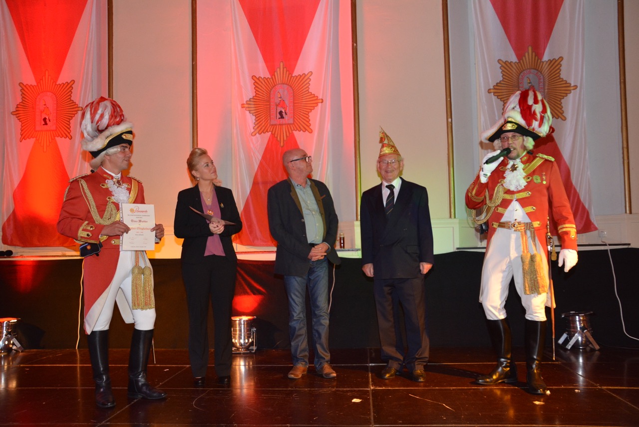 Zwischen den einzelnen Auftritten der Formationen wurden Ira Mletzko, Peter Axeler, Jörg Esser für 25 Jahre aktive Mitgliedschaft und Georg Mletzko und Heiko Marziniak für 40 Jahre aktive Mitgliedschaft geehrt. Für 25 Jahre Mitgliedschaft durfte die Prinzengarde Vanessa Bungarten (ehemalige Regimentstochter) und Hans Dieter Uckert ehren. Für 40 Jahre Mitgliedschaft bedankte sich die Garde bei Theo Wattler (Ehrenbürger der Stadt Euskirchen). Zum Generalmajor wurden Günter Esser und Günter Hövel befördert.