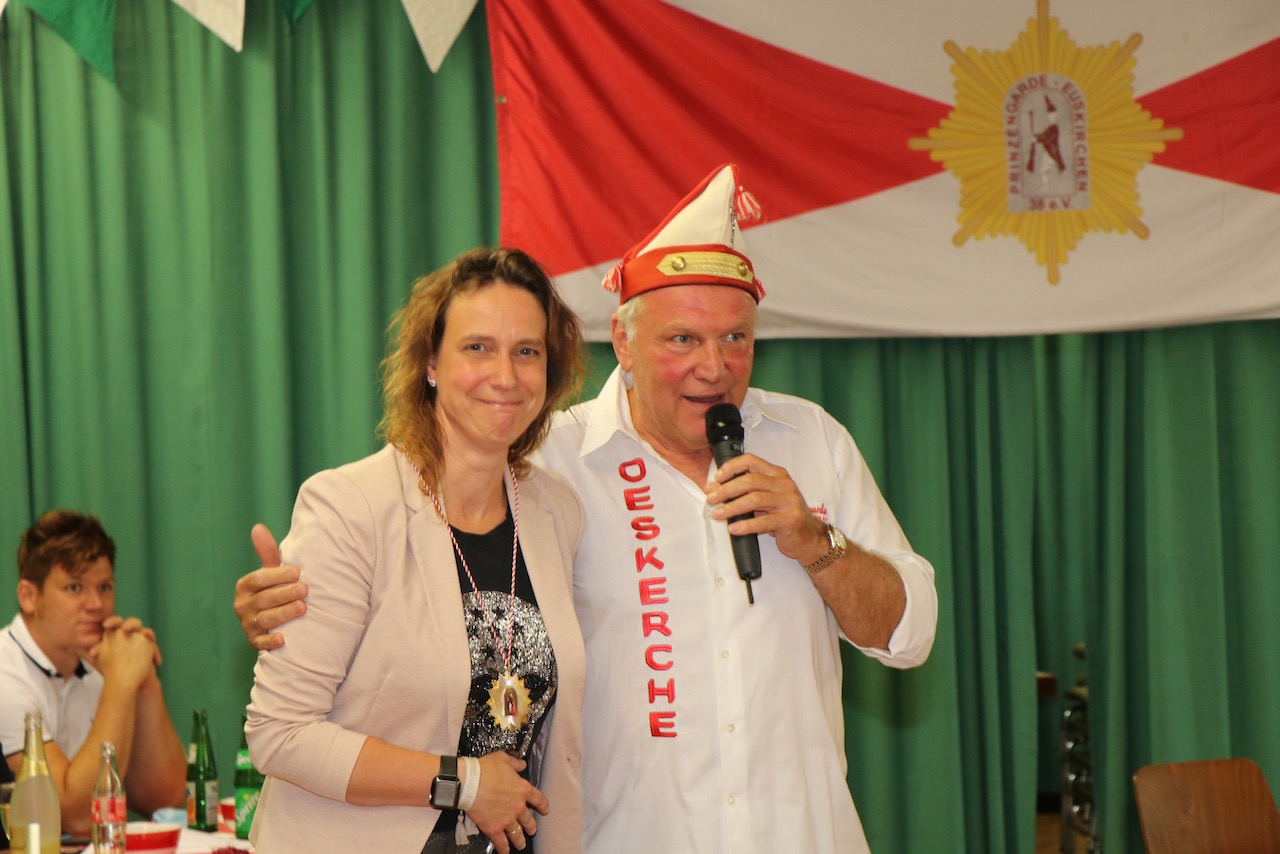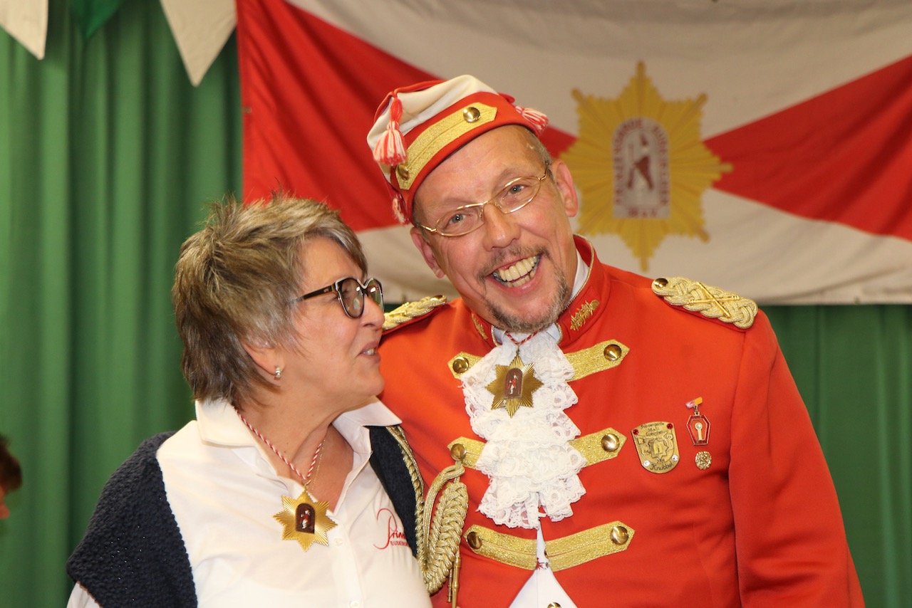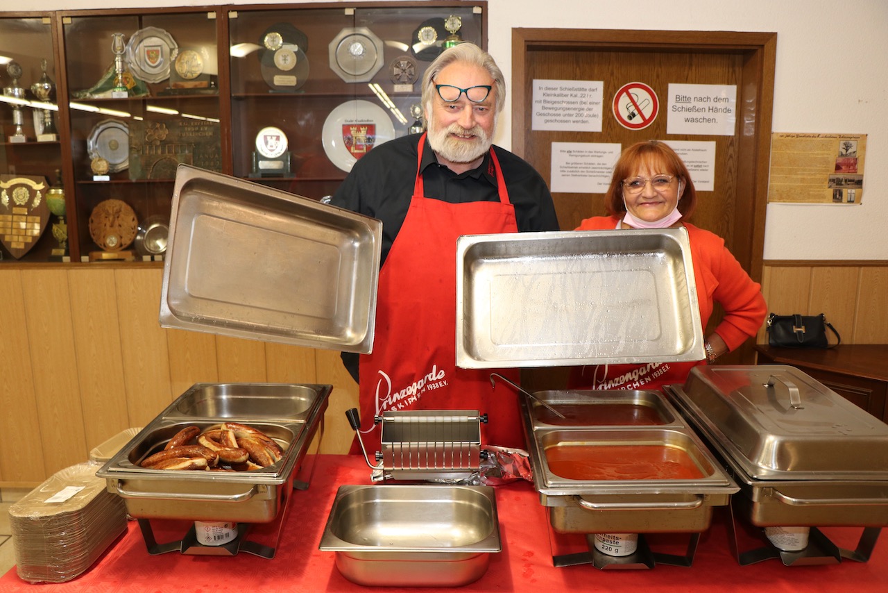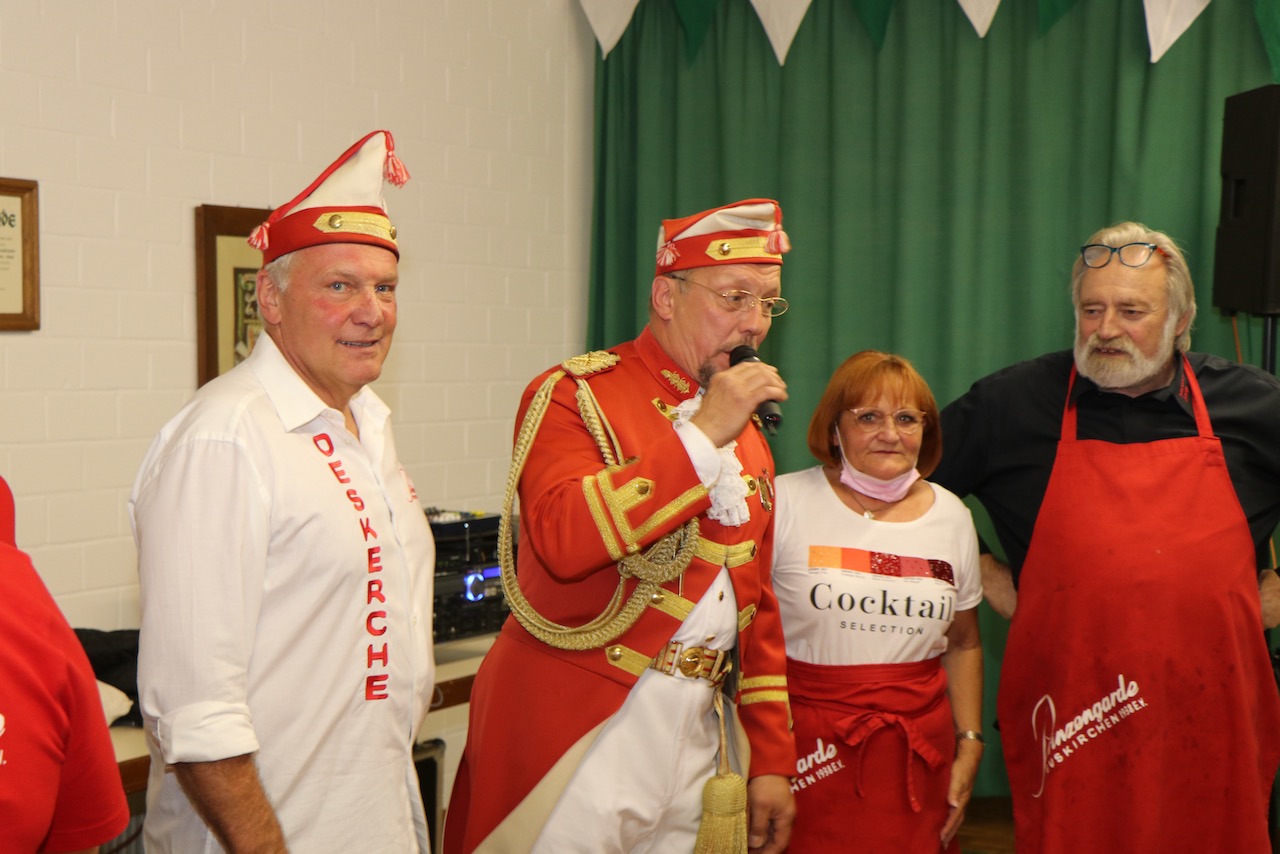 Da Grünkohl mit Mettwurst, das traditionelle Essen beim Generalappell der Prinzengarde nicht so gut zur aktuellen Jahreszeit passt, entschied sich unser Koch Günter Esser zu einer anderen Köstlichkeit. Zusammen mit seiner Frau Magitta servierte er den Prinzengardisten Currywurst und Pommes Rot/Weiß. Euch beiden einen herzlichen Dank für Eure Mühe und Arbeit.