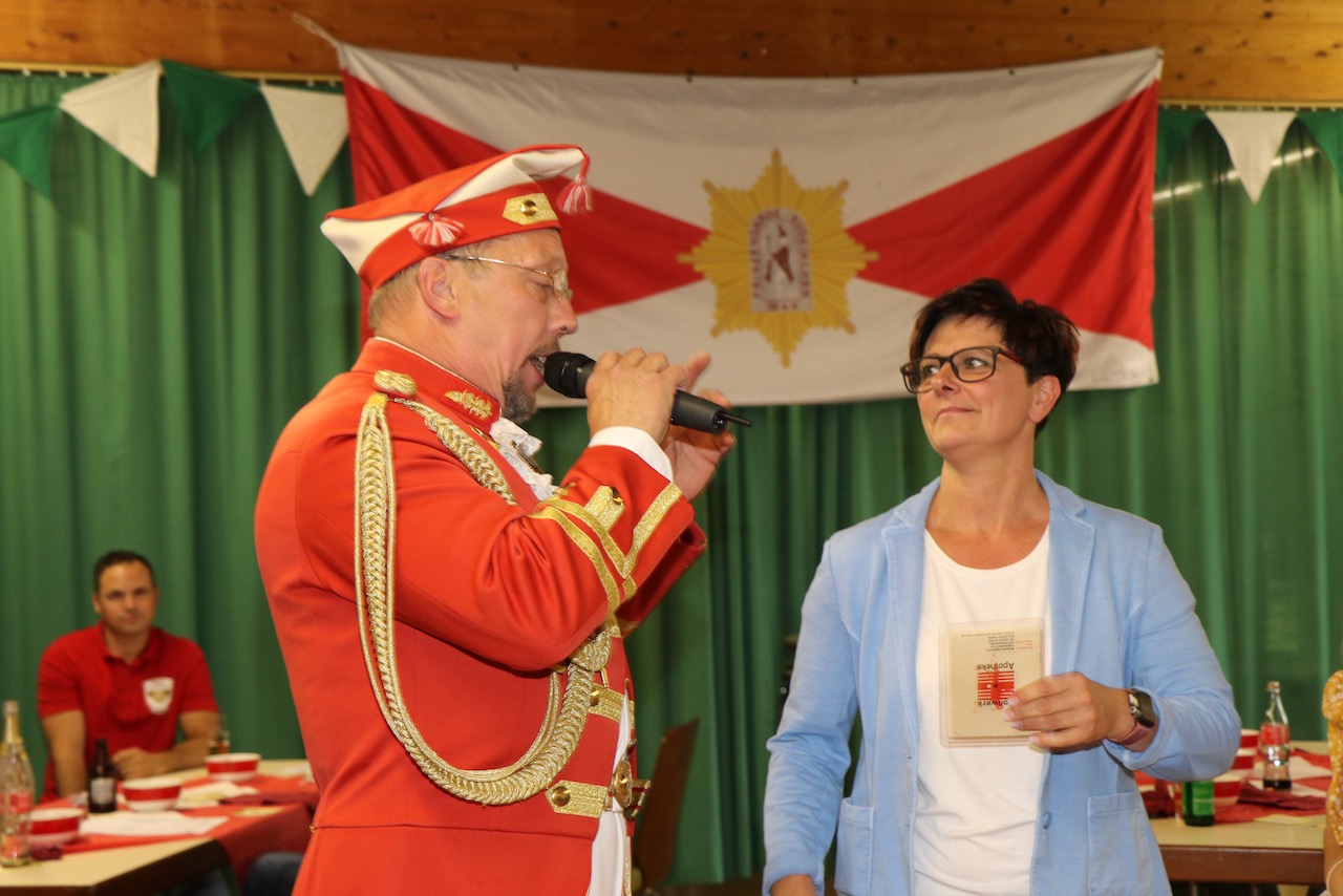 Aufgrund der Corona Pandemie musste der reguläre Generalappell 2020, der am 06.11.2020 stattfinden sollte, ausfallen. Erfreulicherweise konnte die Prinzengarde den Generalappell, unter Einhaltung der aktuellen Corona Schutzverordnung für das Land Nordrhein-Westfalen, am 28.08.2021 in etwas abgespeckter Form nachholen. Präsident und Kommandant durften viele Prinzengardisten in der Schützenhalle zu Kuchenheim begrüßen. Wie auf dem Generalappell der Prinzengarde üblich, wurden vom Kommandanten die anstehenden Beförderungen durchgeführt. So wurde u.A. Jochen Tews aus dem Tanzcorps zum Generalmajor und die Knubbelisten Wilfried Kaiser und Peter Axeler zum General befördert. Außerdem erhielt unsere Regimentstochter Lea Klose aus der Hand des Kommandanten den Gardestern. Für 25 aktive Jahre wurde Corps Adjutant Stephan Bungarten, aus dem Musikzug Alexandra Esser und Artillerist Christoph Schmitz der besondere Gardestern nebst der dazugehörigen Urkunde überreicht. Herzlichen Glückwunsch an alle zu ihrer Ehrung bzw. zur Beförderung.