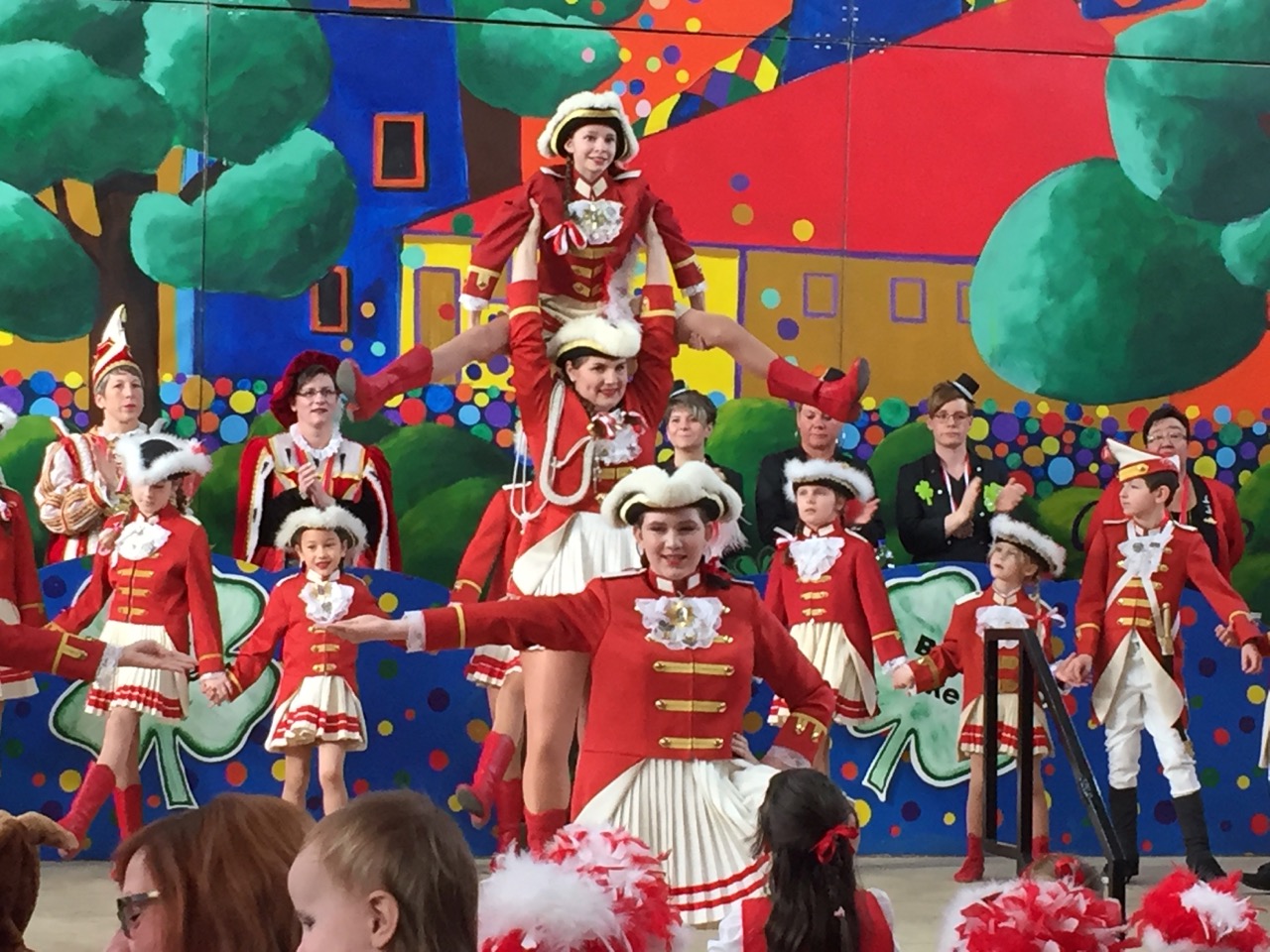 Zu Gast in der vollen Veranstaltungshalle zu Arloff-Kirspenich bot sich die Gelegenheit, das Knübbelchen bei ihrem ersten Auftritt des Tages vor dem tollen Bühnenbild abzulichten.
