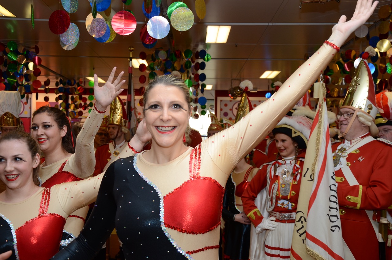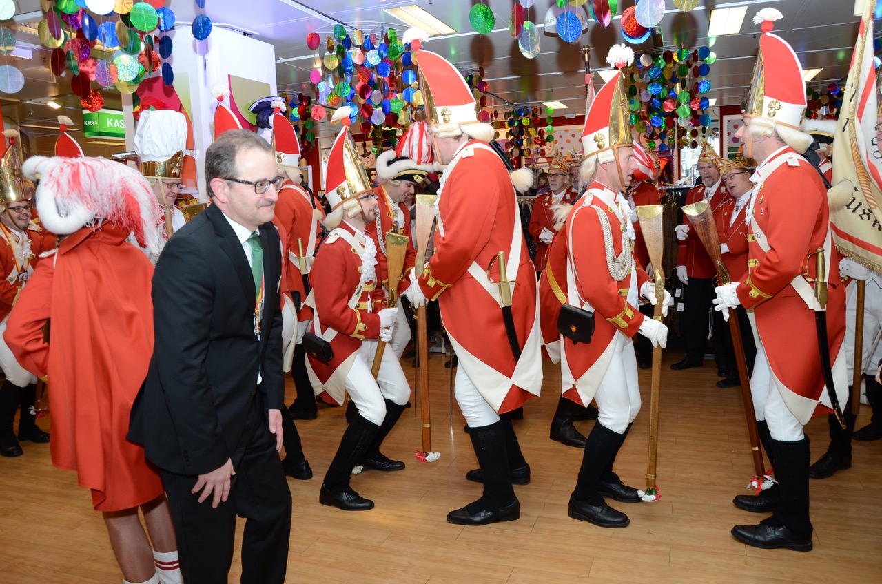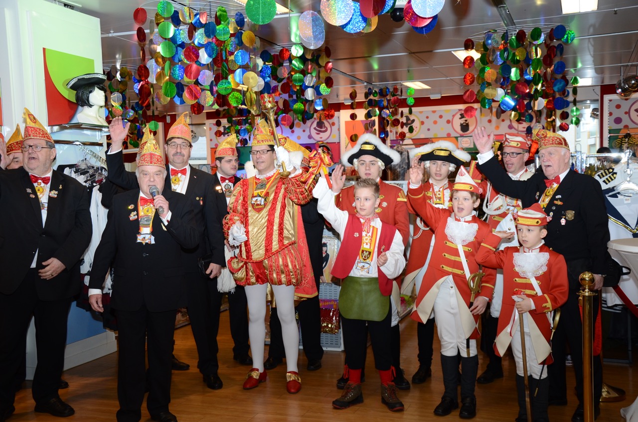 23.01.2016, 11:30 Uhr: Die Prinzengarde zieht mit großem Gefolge in den Kaufhof Euskirchen ein. Grund des Besuches war der Galleria Kaufhof, speziell natürlich den Menschen die dort arbeiten, Danke zu sagen. Danke für eine großzügige Spende an die Prinzengarde. Alle Formationen der Prinzengarde waren mitgekommen. „Das ist schon eine stattliche Anzahl an Gardisten“ stellte die Geschäftsleitung mit Freuden fest. Nach dem Tanz von unserem Knübbelchen und dem obligatorischen „Stippeföttche“ rundeten die PG Girls den Besuch bei der Galleria Kaufhof ab. Vizepräsident Markus Tews verlieh der Geschäftsleitung den Sessionsorden der Prinzengarde. Zur Erinnerung an unseren Besuch wurde vor dem Haupteingang noch ein Foto mit allen Prinzengardisten und der Geschäftsleitung der Galleria Kaufhof geschoßen. Im Anschluß an unseren Besuch hatte die Galleria Kaufhof zu einem Imbiss geladen. Es ist schön, das es Firmen bzw. Unternehmen in Euskirchen gibt, die den Karneval in unserer Heimatstadt tatkäftig unterstützen. Nochmals Vielen Dank.